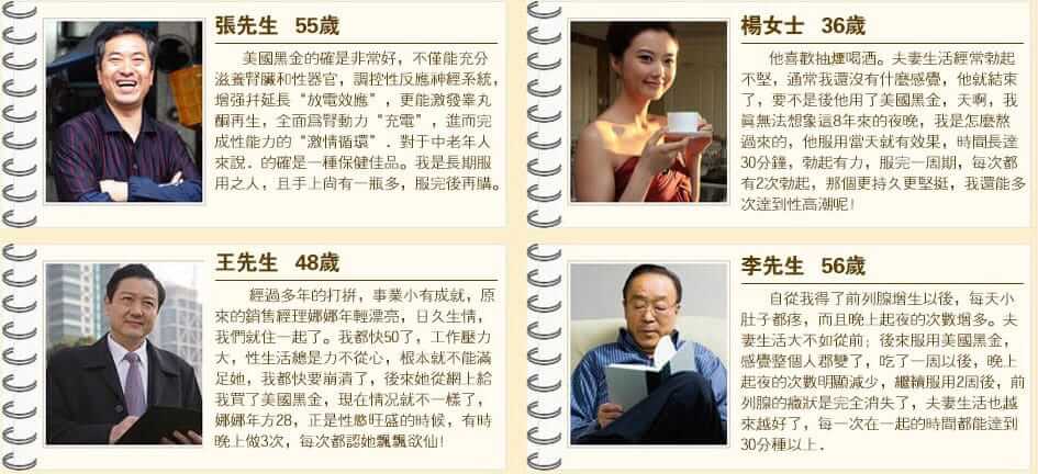 不少男生平常可能喜歡自己來,長久下來實際上場時,就容易中途疲軟,有過一次失敗的前例,讓我再接下來每一次房事過程中,總會想到上一次不愉快的經驗,久了就對心理產生壓力,自從使用了美國黑金之後,明顯感覺到自己的變得持久,那種感覺簡直是棒極了,還找回了自己的自信,可以說使用美國黑金之後發現,原來我也可以很行。