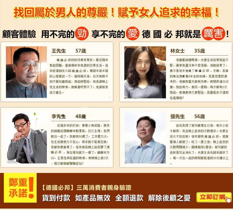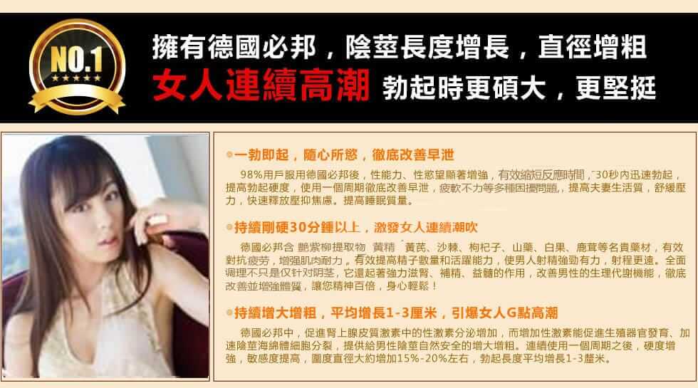 德國必邦于2013在美國上市販售,一上市就獲得超強超好效果的高度評價!經過多年年的市場開拓與臨床試驗,德國必邦中「靶向活性肽」針對男性陽痿 不舉症狀、早洩不持久、陰莖短小的男性有特效,故在2016在台灣地區成立進入台灣官方連鎖藥局販售,請認準本網『https://geratme.com.tw』是台灣唯一正品販賣中心!