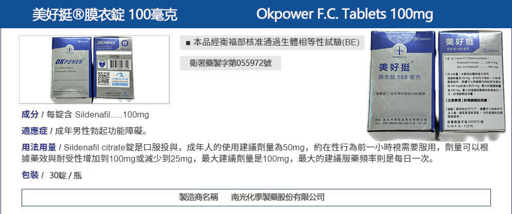 | 商品名稱 | 美好挺 OKPOWER 100mg(瓶裝版) |