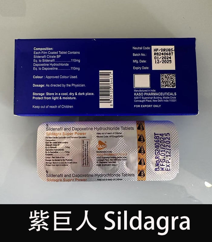 紫巨人 Sildagra Super Power 是來自印度 KASO Pharmaceuticals 製藥公司推出的高劑量雙效壯陽藥,專為改善勃起功能障礙(ED)與早洩(PE)問題所設計。它結合兩大關鍵成分:西地那非 110mg 與 達泊西汀 110mg,一次解決硬度不足與無法持久的困擾,讓您體驗前所未有的強勁性愛表現!