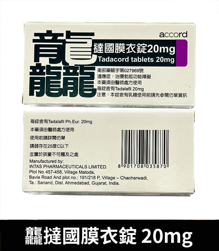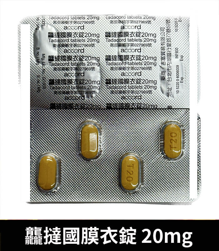 龘撻國 Tadacord 20mg 膜衣錠 (4粒/盒) Tadalafil丨正品保證