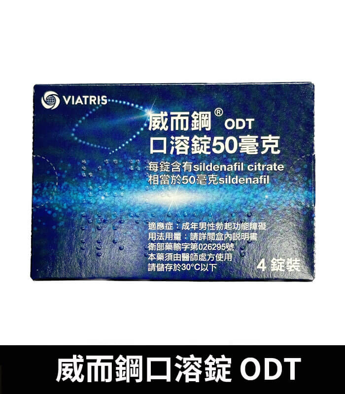 威而鋼口溶錠(VIAGRA ODT) 是原廠輝瑞(Pfizer)推出的創新劑型,專為不便吞服傳統藥錠的男性設計。每錠含有 西地那非(Sildenafil) 成分,可有效改善勃起功能障礙(ED),幫助提升勃起硬度與持久力。