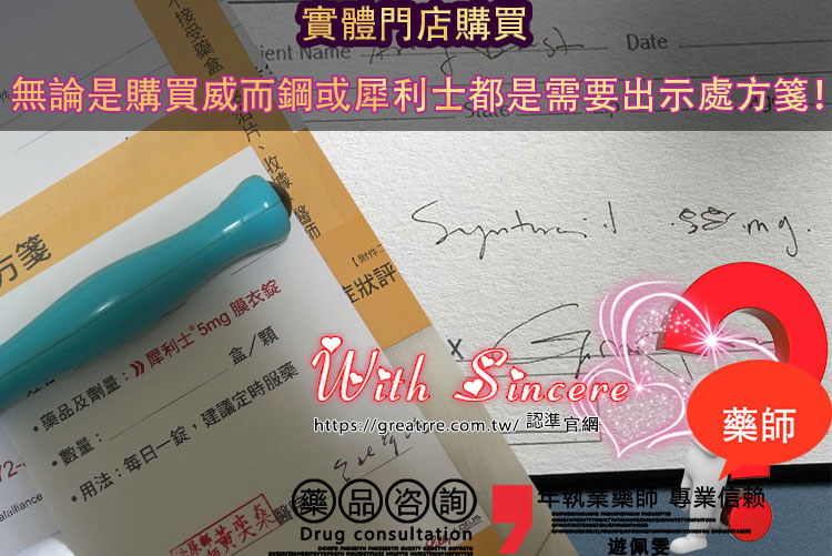 威而鋼是一款處方藥物,需憑處方箋購買(例如犀利士、必利勁、樂威壯等也都需要處方箋)。